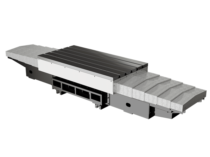 橫向滑臺及工作臺均為灰鑄鐵鑄造。橫向滑臺采用超大跨距的結(jié)構(gòu)設(shè)計,有效增加機床穩(wěn)定性。