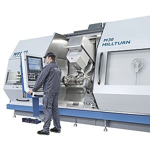 新型M30/M35、M30-G/M35-G系列機(jī)床是創(chuàng)新與標(biāo)準(zhǔn)的結(jié)合。這一小型多功能車-鉆-銑中心可加工旋徑達(dá)520mm的復(fù)雜軸類及 盤類零件,且加工長(zhǎng)度達(dá)2000mm。它既可以作為一臺(tái)車床、一臺(tái)6 軸加工中心、如需要還可作為切齒或深孔鉆機(jī)床。