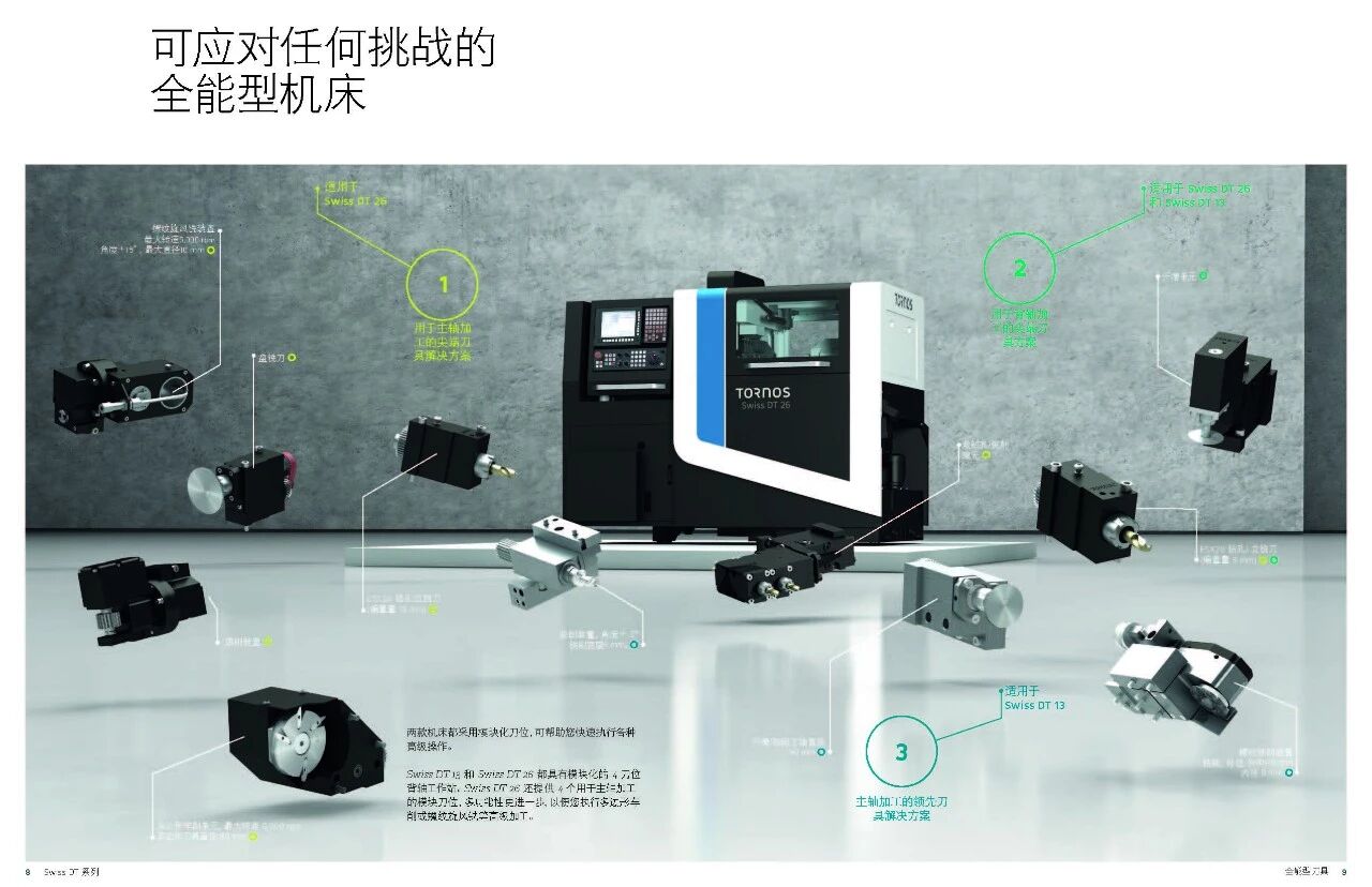 Swiss DT 系列瑞士型車床專業(yè)設(shè)計(jì)滿足典型長 短車削工件的各種要求。該系列機(jī)床簡單易 用,加工直徑達(dá) 13 和 25.4 mm,可顯著提高生 產(chǎn)效率。Swiss DT 系列采用先進(jìn)的技術(shù)和高效的五軸運(yùn)動(dòng)結(jié)構(gòu),是所有車削和銑削加工的理想之選。